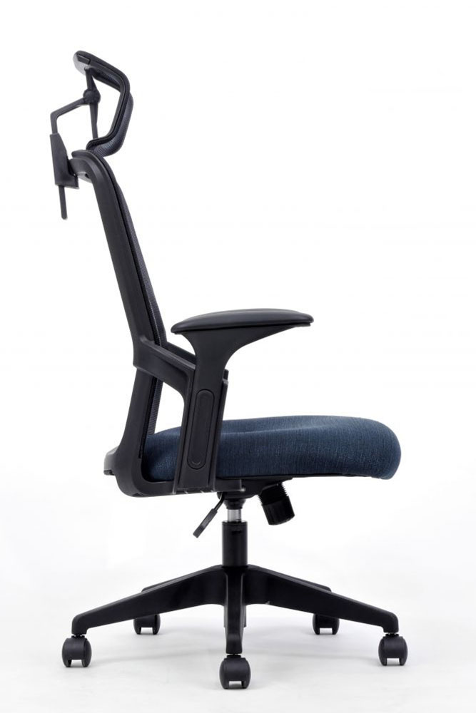 - Επένδυση έδρας με ύφασμα υψηλής αντοχής στις τριβές σε χρώμα μπλε.