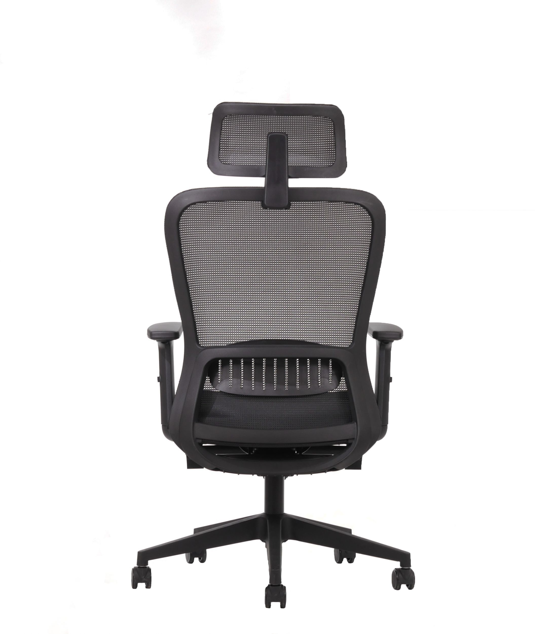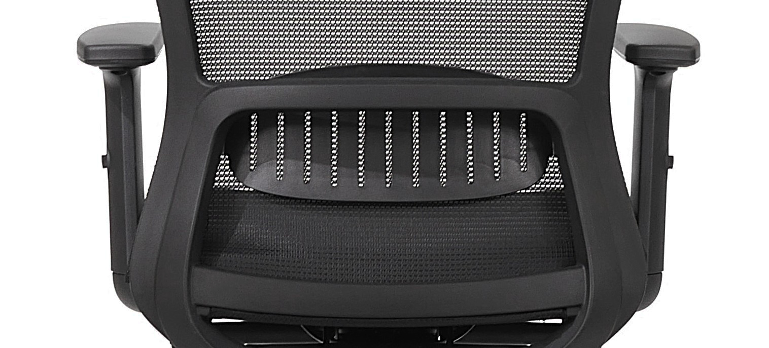 - Πλάτη με εργονομικό σχεδιασμό, επενδυμένη με εξαιρετικά ισχυρό ελαστικό δίχτυ χρώματος μαύρου, το οποίο διευκολύνει την κυκλοφορία του αέρα και αποτρέπει την εφίδρωση του σώματος κατά την πολύωρη εργασία.